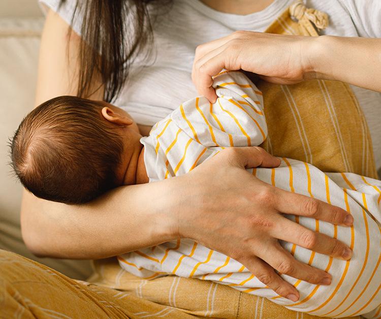 When breastfeeding, check to see that your baby has an optimal latch on your nipple and the surrounding areola to help them avoid swallowing too much air.