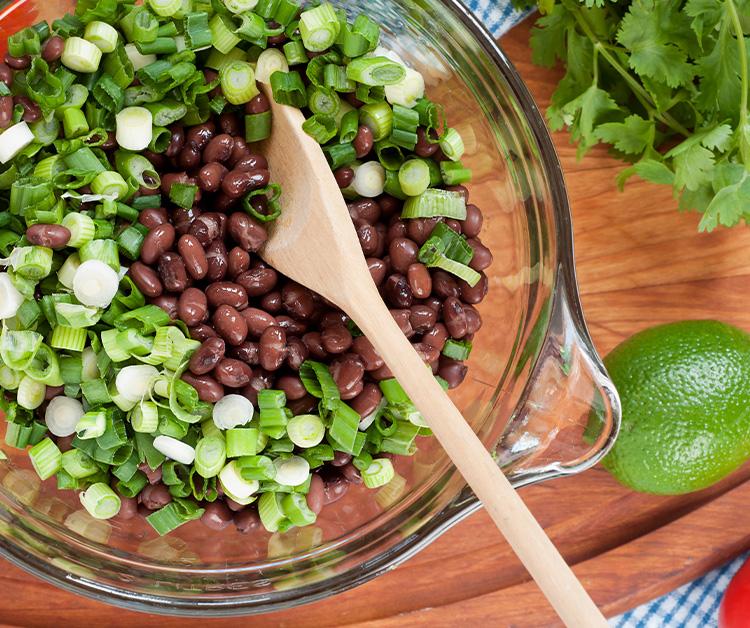 Make the bean salad up to five days ahead and store it in the refrigerator. Cut the avocado just before serving to minimize the darkening that occurs when avocado is exposed to air.